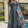 Silk Blend Jacquard knee length regular sherwani, has a mandarin collar, long sleeves. Comes with pant style pyjama,,A lightweight, sheer black dupatta adorned with delicate sequin embroidery along the border, adding a touch of understated glamour.making it perfect for EID ,festive occasions, weddings, and celebrations.?
