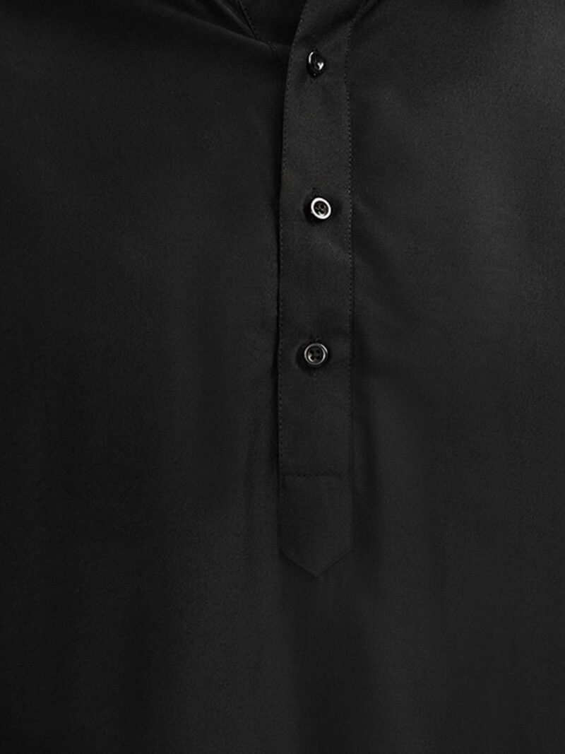 Make an elegant statement with this black viscose kurta featuring shirt collar design and comfortable white patiala for festive and formal occasions.
