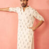 Add contemporary style to your wardrobe with Vastramay’s cream cotton kurta featuring unique chess print design, paired with comfortable white cotton pyjama for perfect casual ethnic styling.