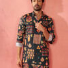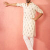Stay comfortable and stylish with Absolutely Desi’s cream cotton kurta. Features trendy chess print design with concealed placket and practical pockets on breathable cotton fabric.