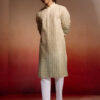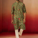Celebrate heritage with Vastramay’s green bandhani printed kurta set. Features premium silk blend with authentic bandhani digital print, concealed placket design, and comfortable cream pyjama for traditional festivities.