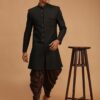 Men’s Multicolor Base Peach Floral Silk Blend Indo Western Set
