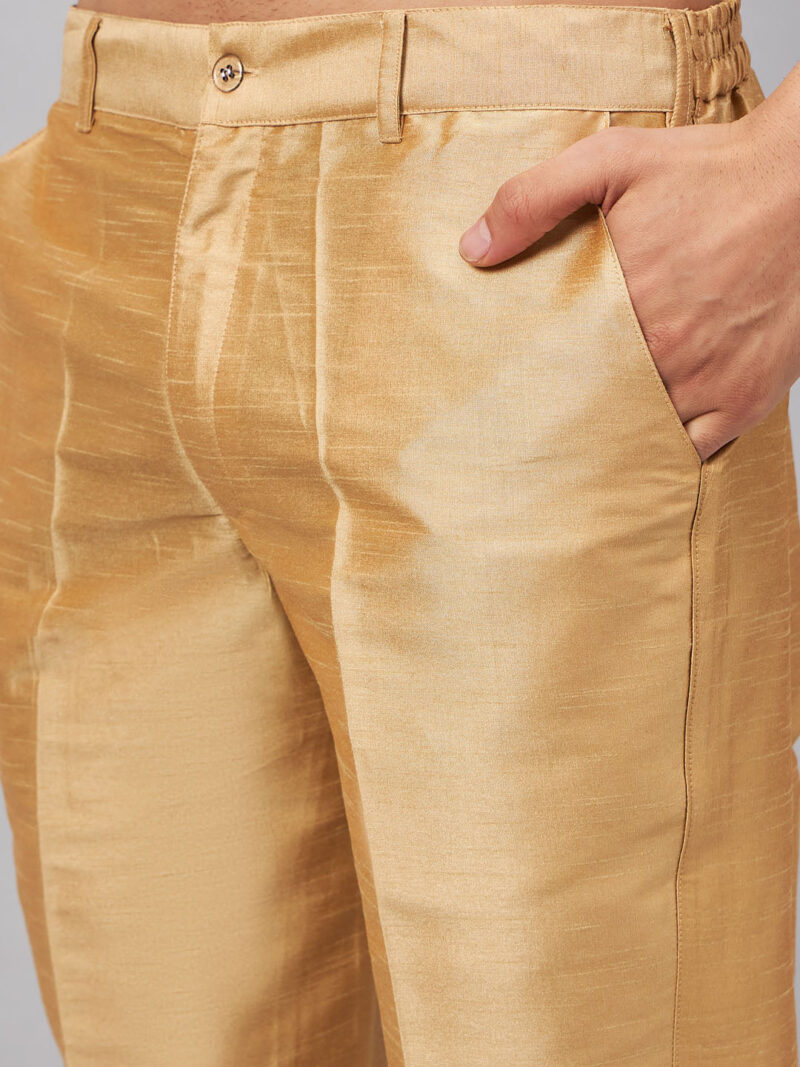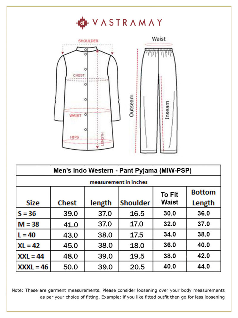 Navy Blue Solid Sherwani With rose gold Solid Pant style pyjama set. Navy Blue Sleek and Smart Looking Angrakha Style Indo-Western Sherwani With rose gold pant style pyjama has an elasticated waistband. Material & Care Top Fabric: Jute Cotton Bottom Fabric: Cotton Blend Dry clean Size & Fit The model (height 6′) is wearing a size L Sleeve Length – Long Sleeves Top Shape – Straight Top Hemline – Straight Top Length – Above Knee Length Neck Mandarin Collar Print or Pattern Type – Self Design Bottom Pattern – Solid Bottom Closure – Slip-On Waistband Elasticated Complete The Look Elegant and trendy, this sherwani from VASTRAMAY is a great add-on to your ethnic collection. Team it with a pair of semiformal shoes or Kolhapuris to get the complete look.