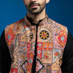 Crepe allover printed embroidered scquiend Jacket Nehru jacket, has a mandarin collar, sleeveless,button closure. Material & Care Crepe Dry Clean or Light Hand Wash Sleeve Length – Sleeveless Top Shape – Straight Top Hemline – Straight Neck Mandarin Collar Jacket Digital Printed Complete The Look Pair up this Nehru jacket with a simple kurta for a stylish look. Add a pair of sneakers for a trendy look