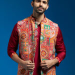 Crepe allover printed embroidered scquiend Jacket Nehru jacket, has a mandarin collar, sleeveless,button closure. Material & Care Crepe Dry Clean or Light Hand Wash Sleeve Length – Sleeveless Top Shape – Straight Top Hemline – Straight Neck Mandarin Collar Jacket Digital Printed Complete The Look Pair up this Nehru jacket with a simple kurta for a stylish look. Add a pair of sneakers for a trendy look