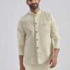 Dupion sillk allover Embroidered Jacket regular Nehru jacket, has a mandarin collar, sleeveless,front open, a welt pocket. Material & Care Dupion Silk Dry Clean Sleeve Length – Sleeveless Top Shape – Straight Top Hemline – Straight Top Length – Waist Length Neck Mandarin Collar Print or Pattern Type – Embroidered