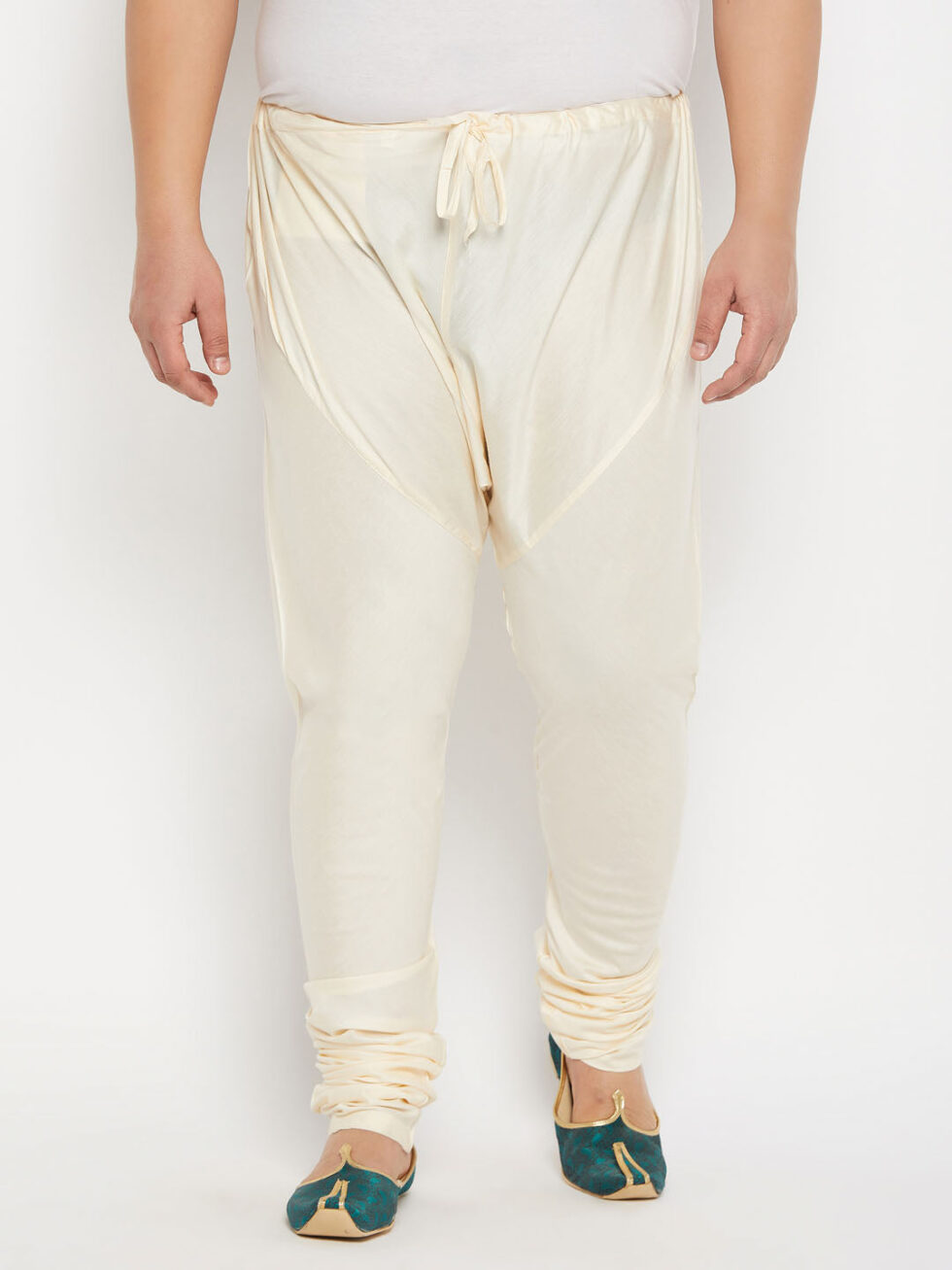 Men’s Plus Size Cream Viscose Solid Relax Fit Churidar