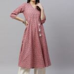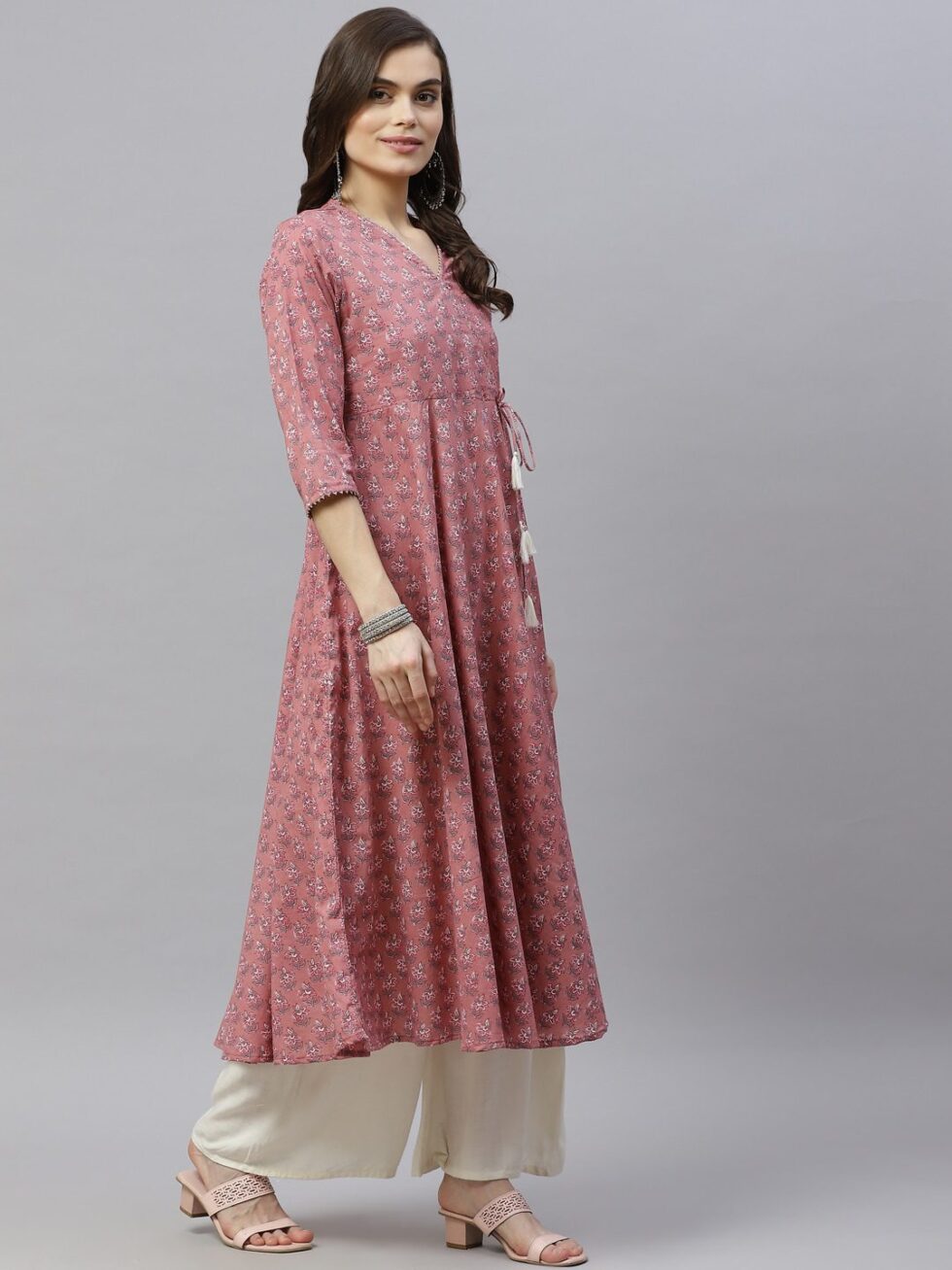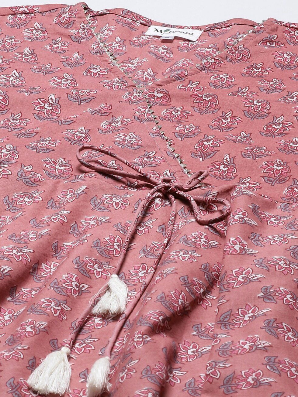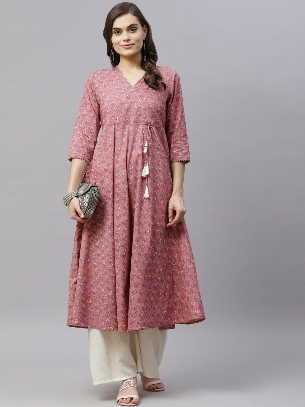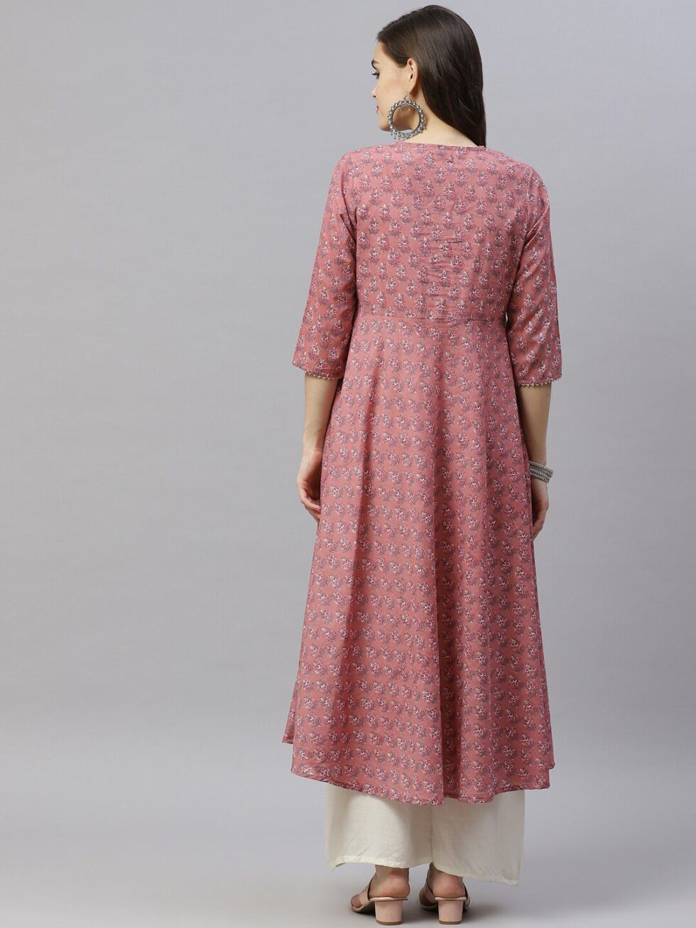 MIRAVAN Women Pink Ethnic Motifs Printed Gotta Patti Cotton Anarkali Kurta