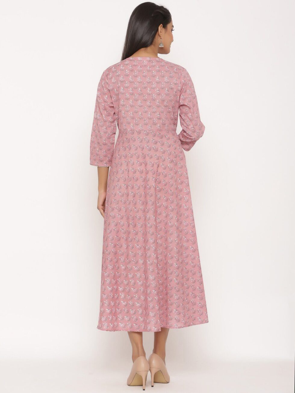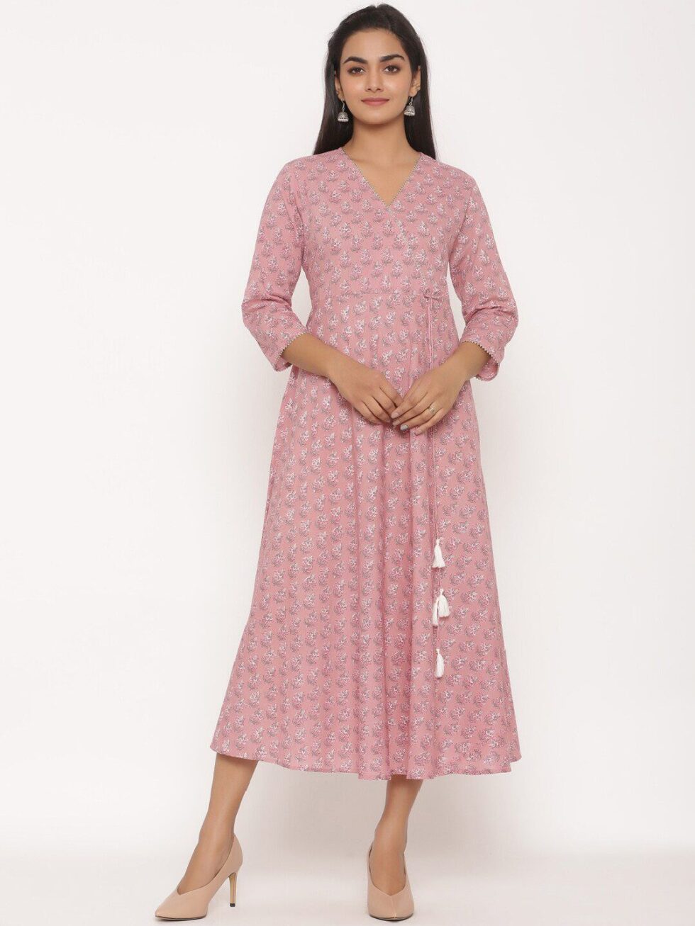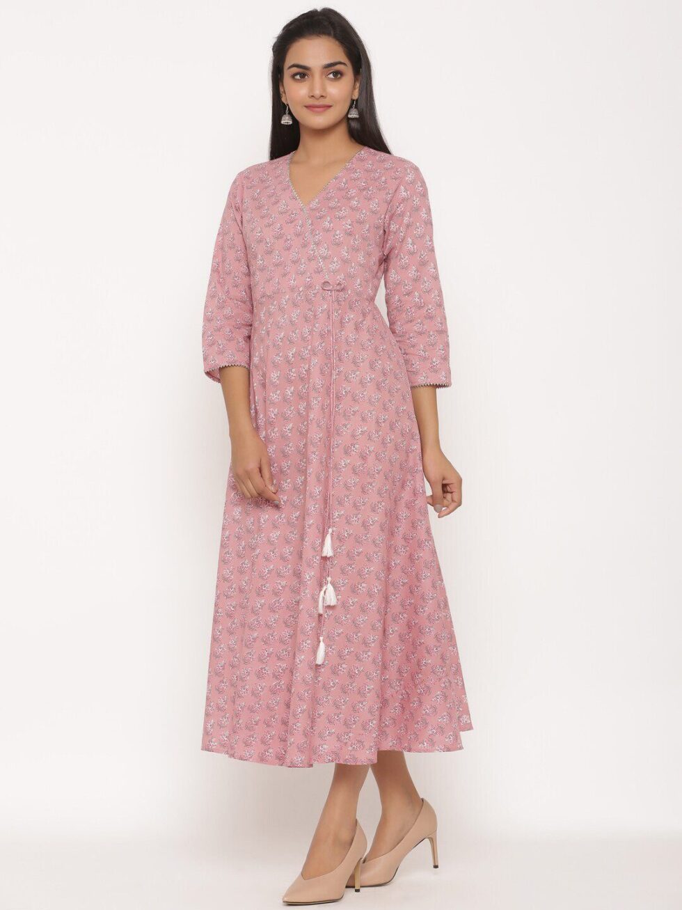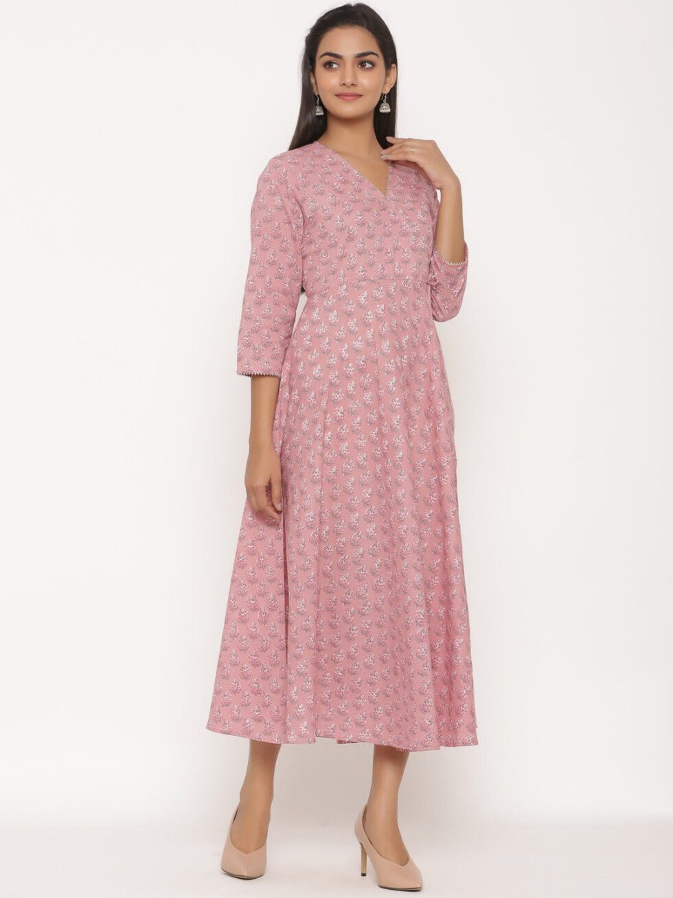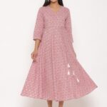 MIRAVAN Women Pink Floral Anarkali Kurta