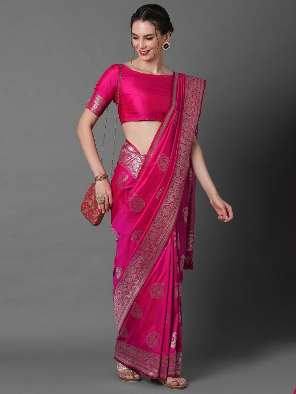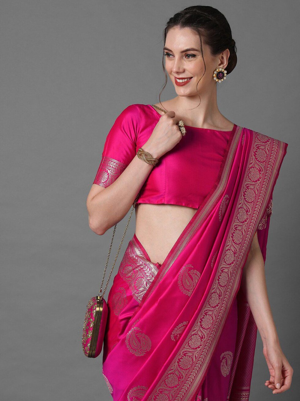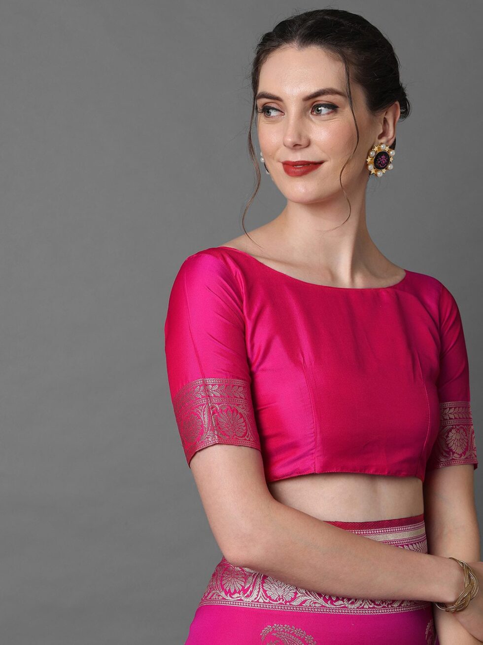 The blouse worn by the model might be for modelling purpose only. Check the image of the blouse piece to understand how the actual blouse piece looks like.
