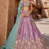 ? Lehenga:- Made of premium quality pink Color with Tissue fabric Full Flaire Semi-Stitched Lehenga With Sequins and stone and Coding work has a thread Embroidery work. Has a thread cutwork border on the hemline.
