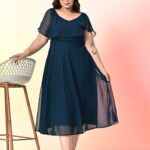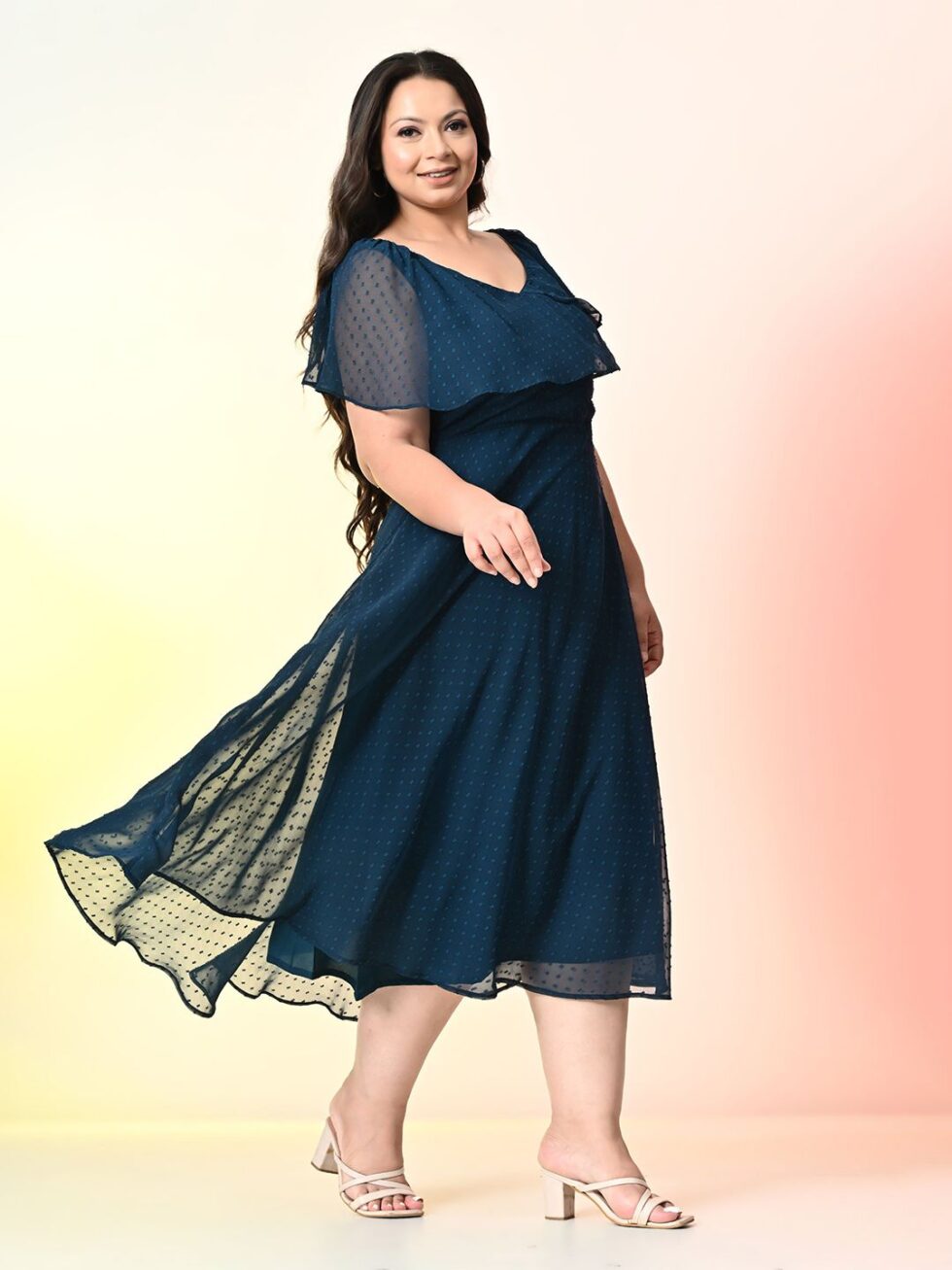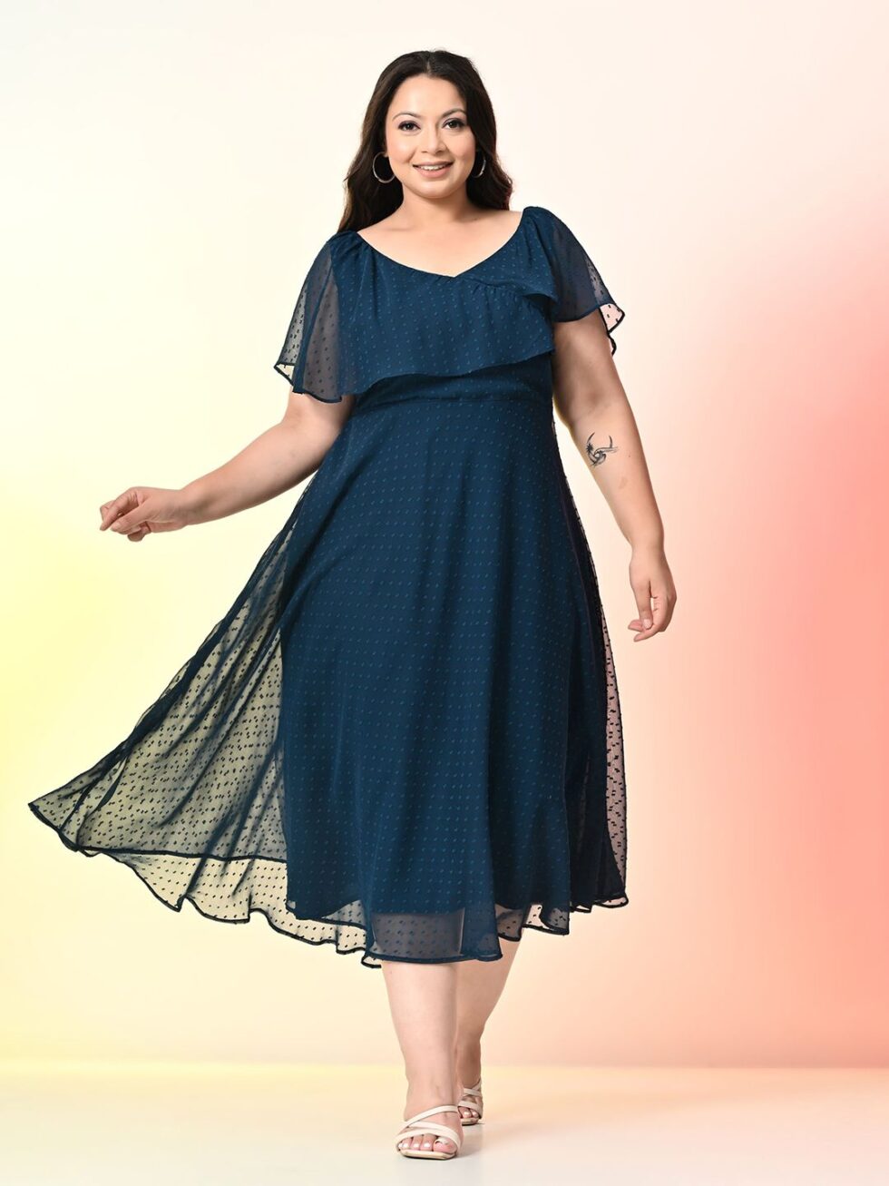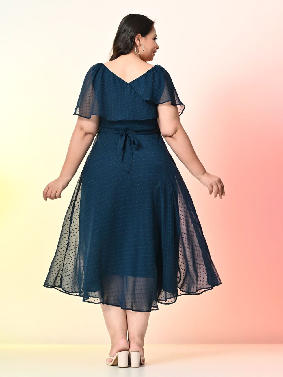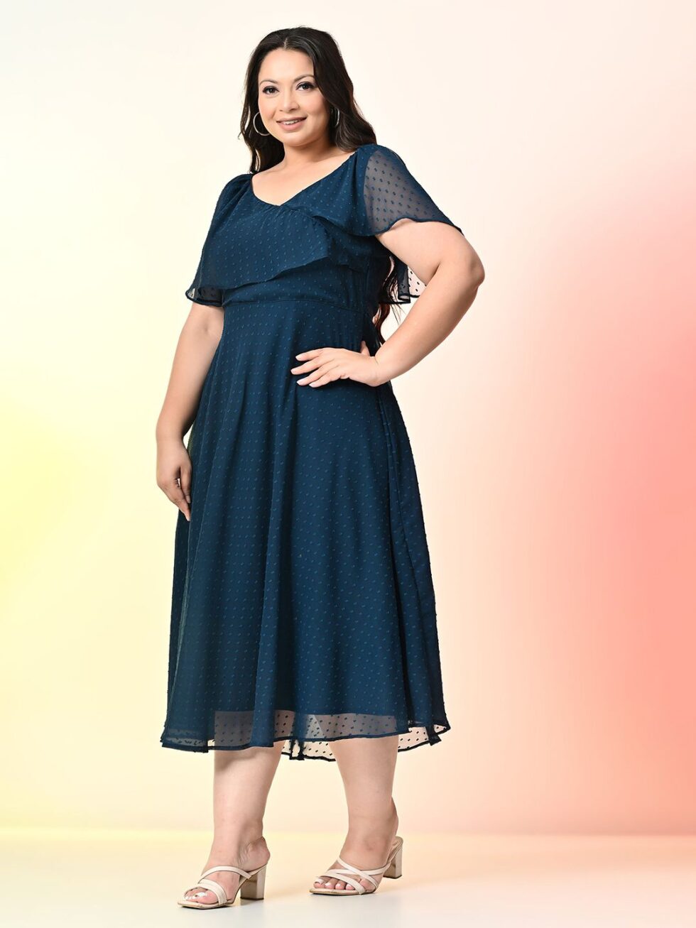 PrettyPlus by Desinoor.com Plus Size Flared Sleeve Georgette Fit and Flare Midi Dress