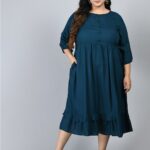 PrettyPlus by Desinoor.com Plus Size Round Neck A-Line Midi Dress