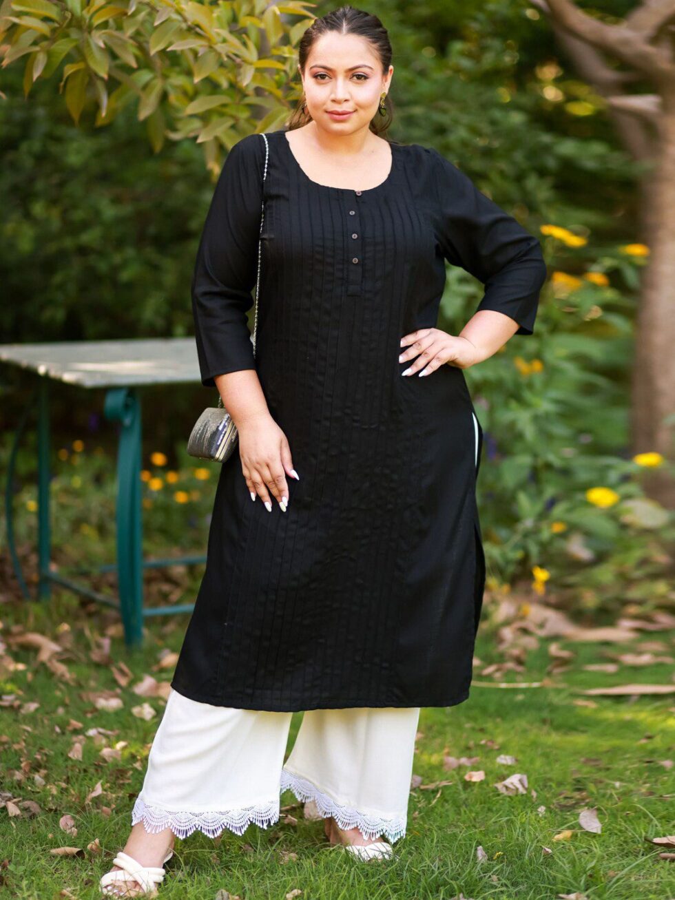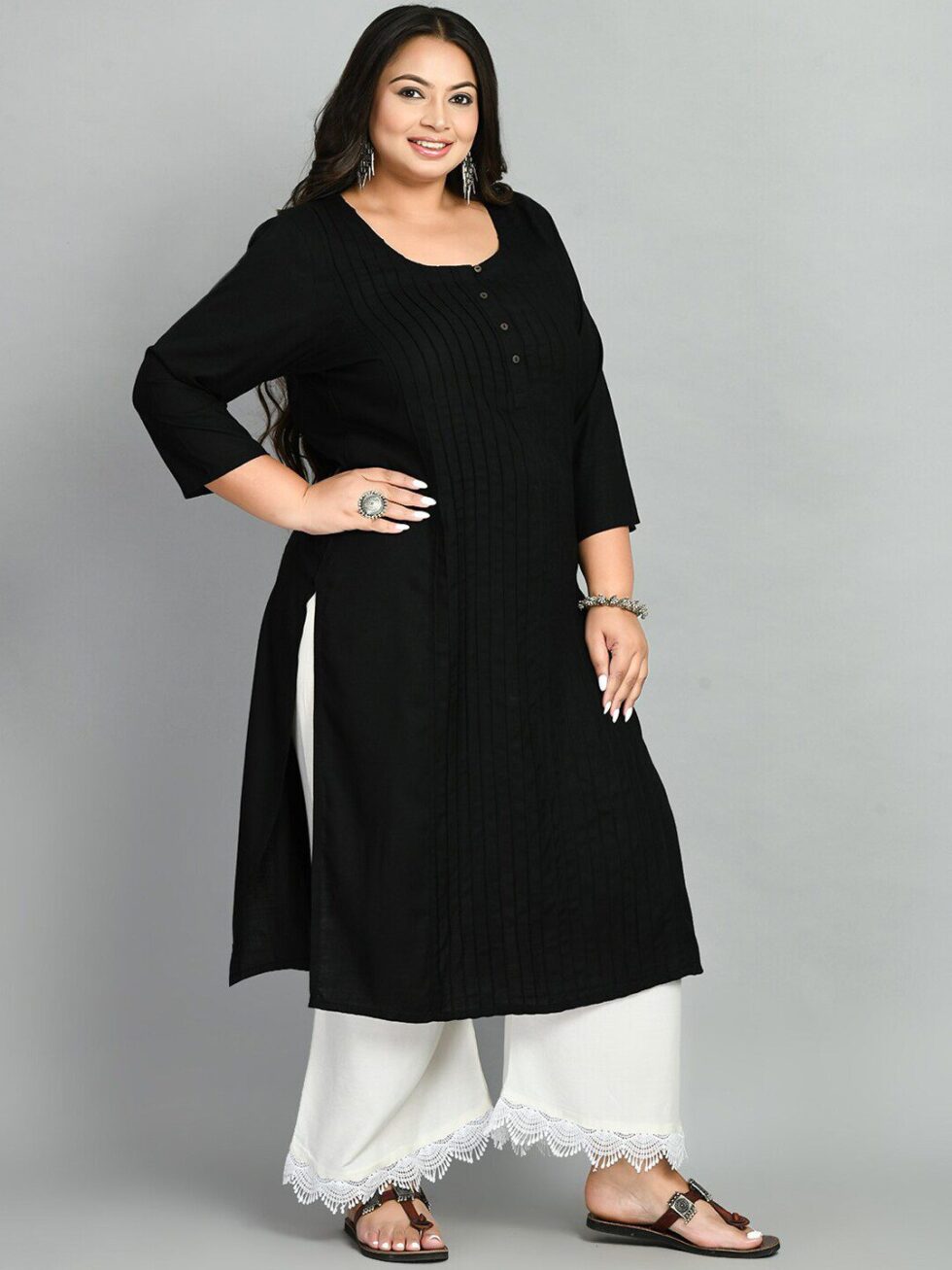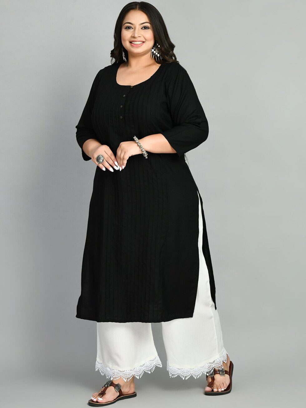 PrettyPlus by Desinoor.com Plus Size Round Neck Straight Kurta