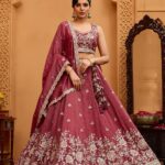 ? Lehenga:- Made of premium quality Rose Gold Color with Tissue fabric Full Flaire Semi-Stitched Lehenga with sequins and stone and Coding work has a thread Embroidery work. Has a thread cutwork border on the hemline.