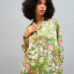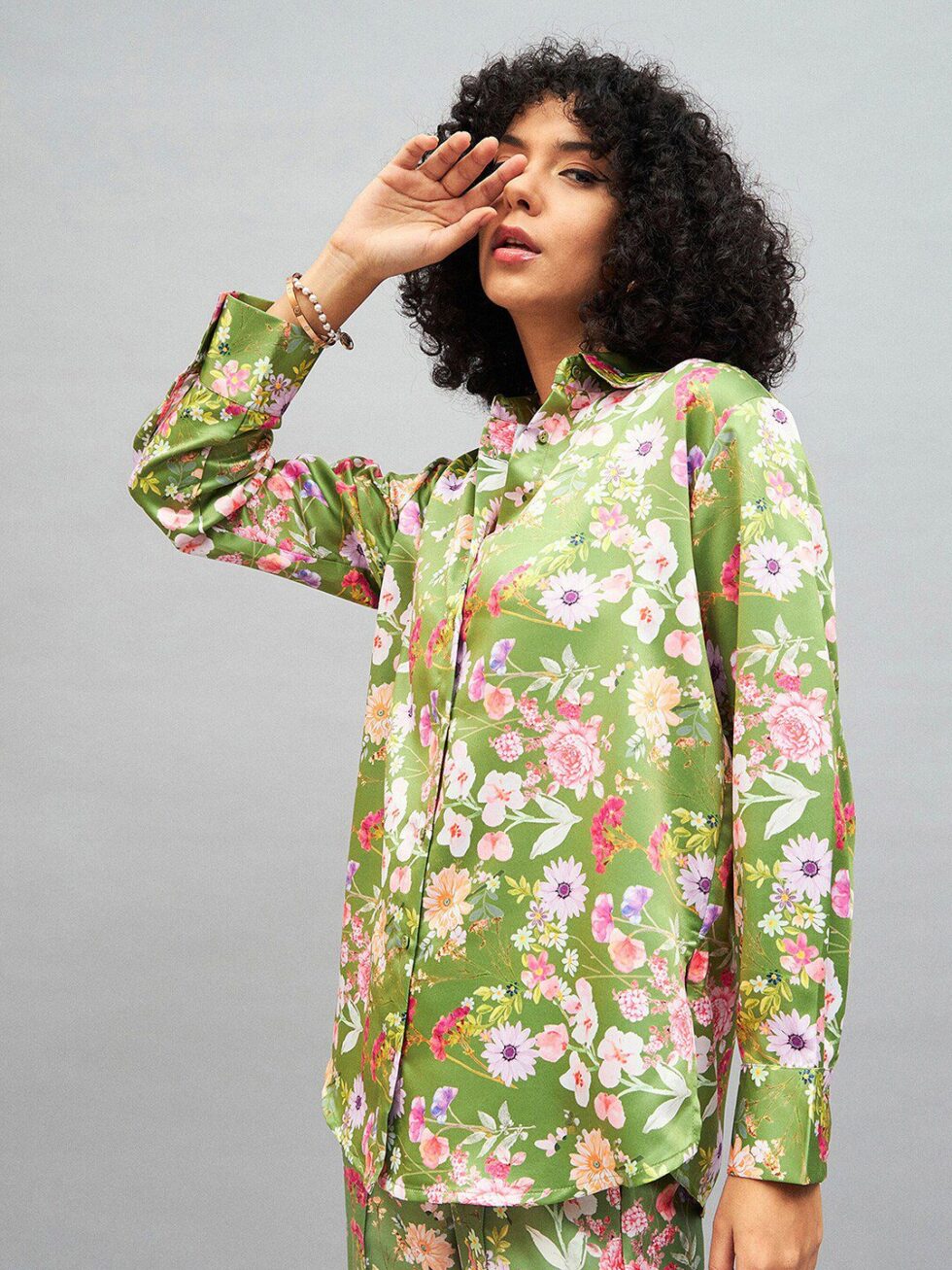 SASSAFRAS Floral Printed Satin Oversized Casual Shirt