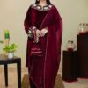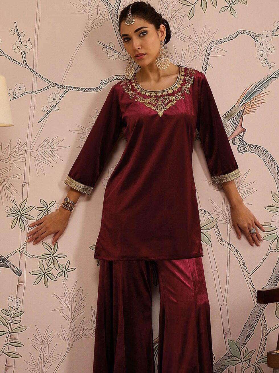 Maroon yoke design Kurti with Trousers