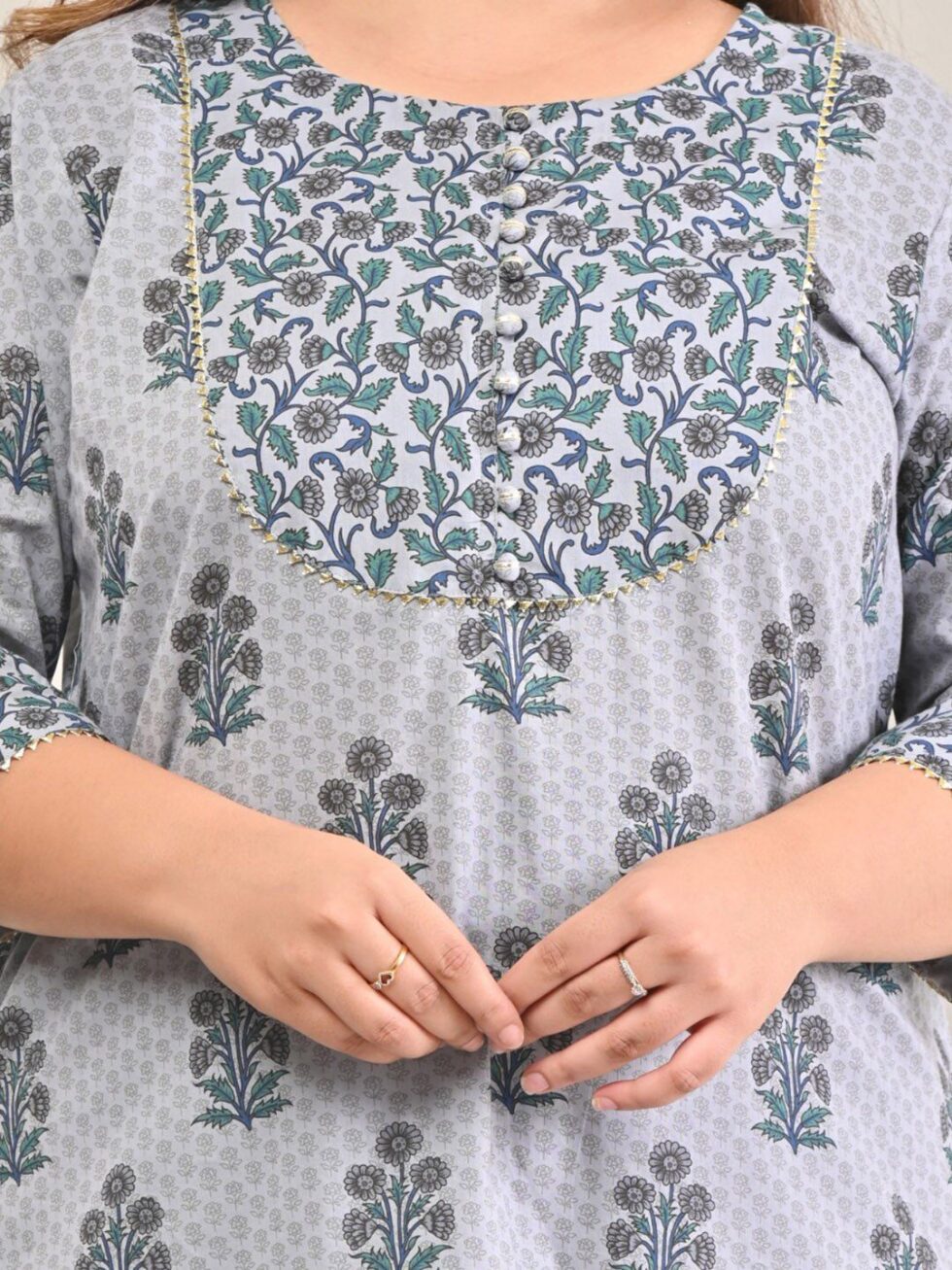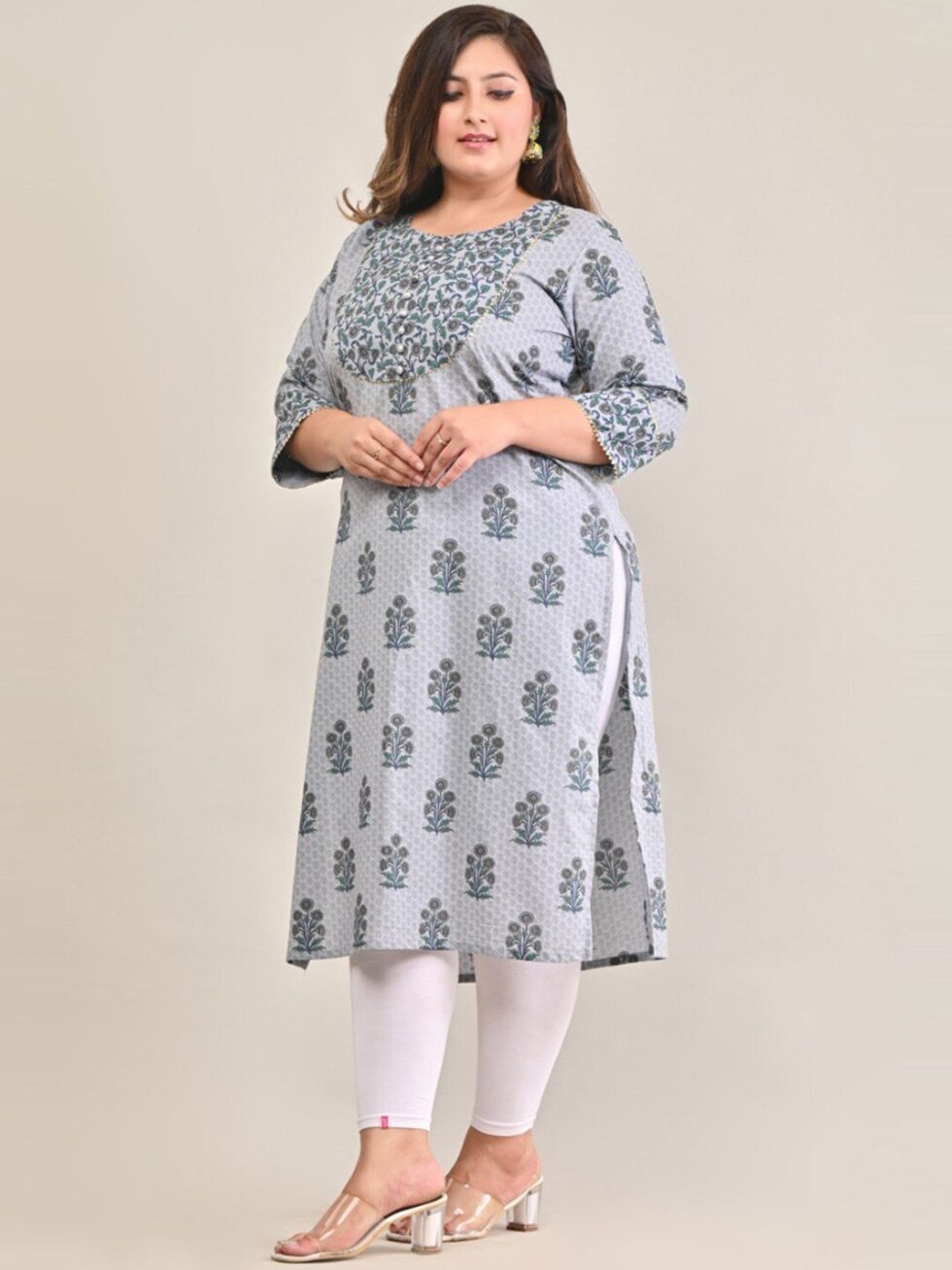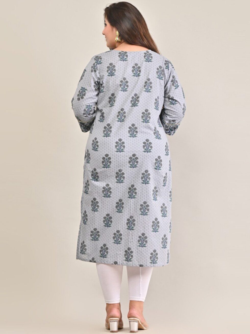 Swasti Women Grey Floral Printed Floral Pure Cotton Kurta