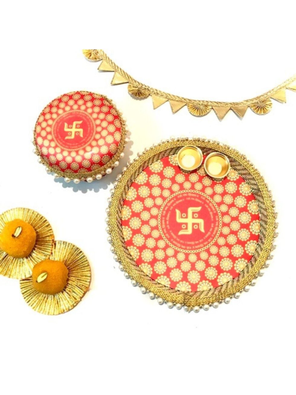 Swastika Pooja thaali and sweet box collection.