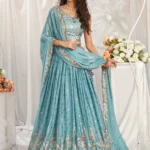 Style Note:-?Gorgeous and Beautiful with this Lehenga choli dupatta set from the?“Absolutely Desi”. This lehenga choli is made from Georgette fabric. The lehenga choli has a beautiful contemporary double Sequins design and can be worn on festive occasions or casual occasions where you want to flaunt your style with this outfit.