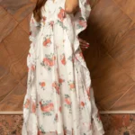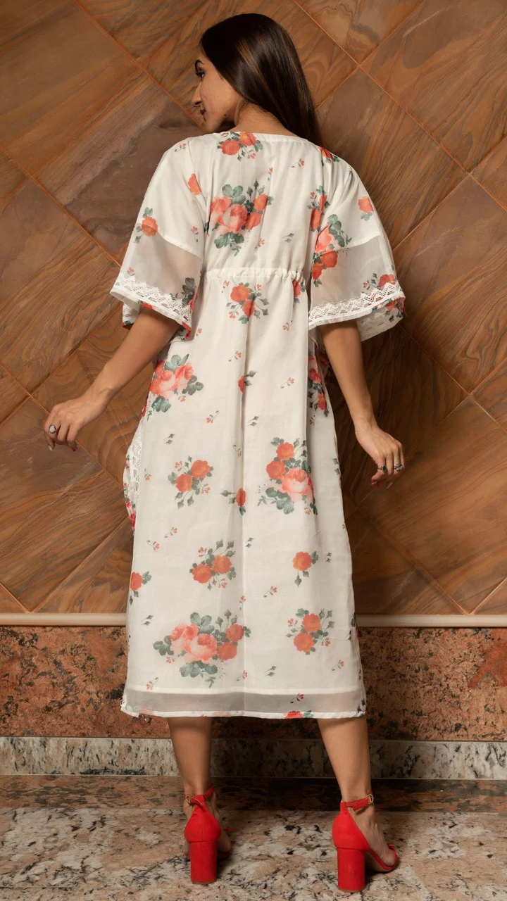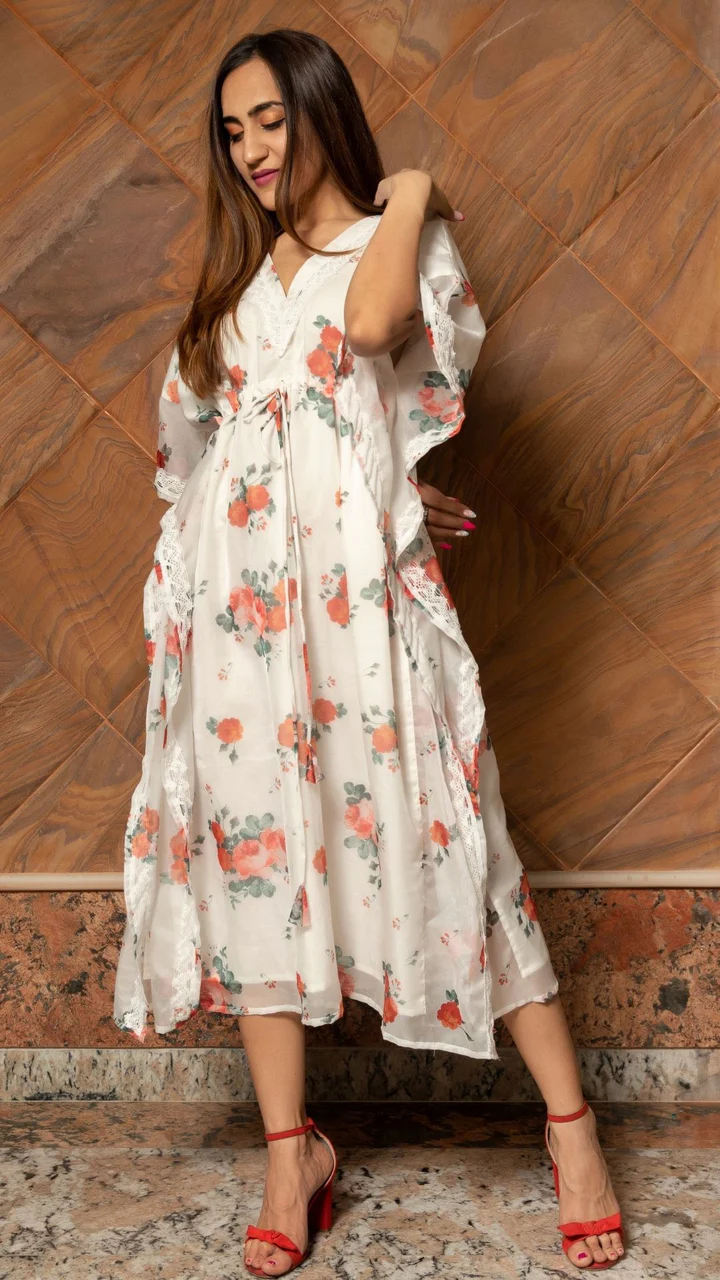 WHITE AND RED ORGANZA KAFTAN DRESS