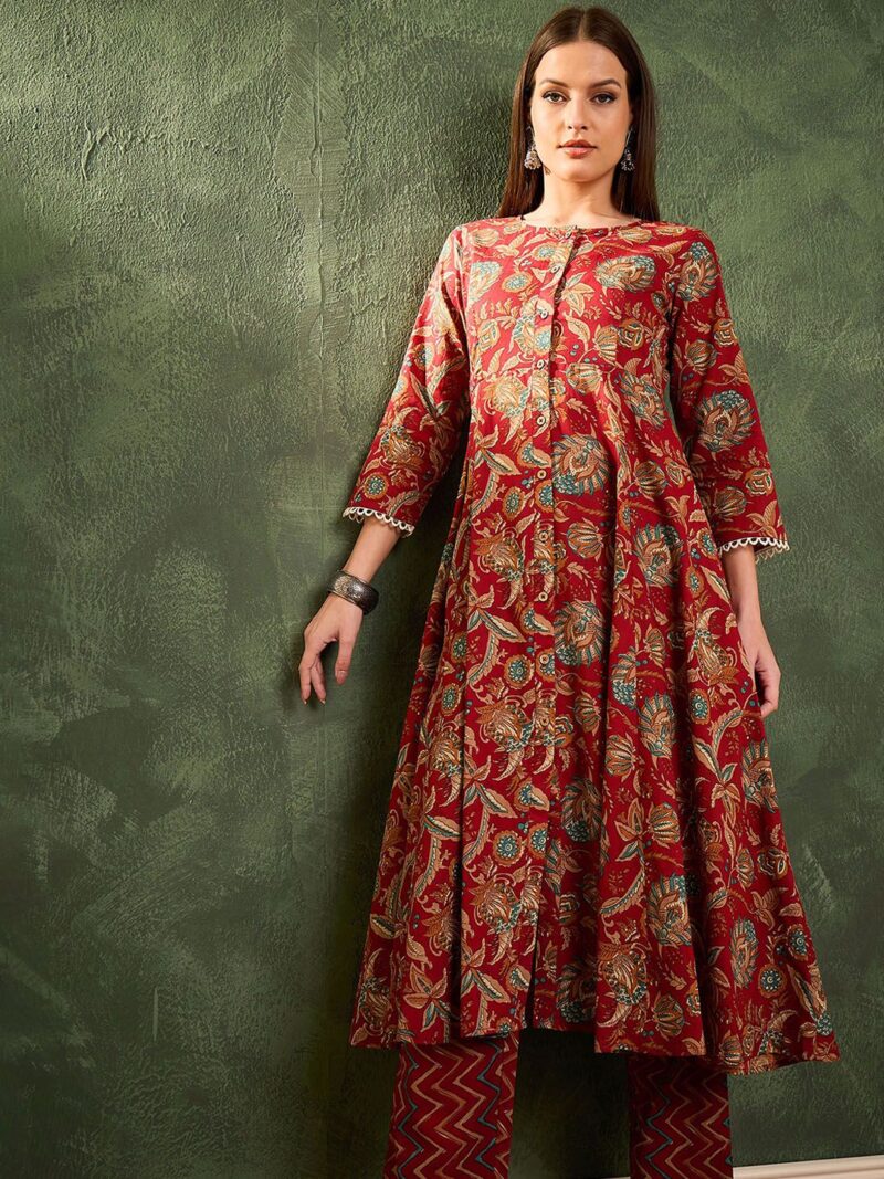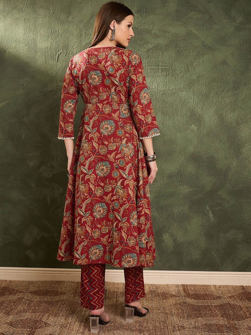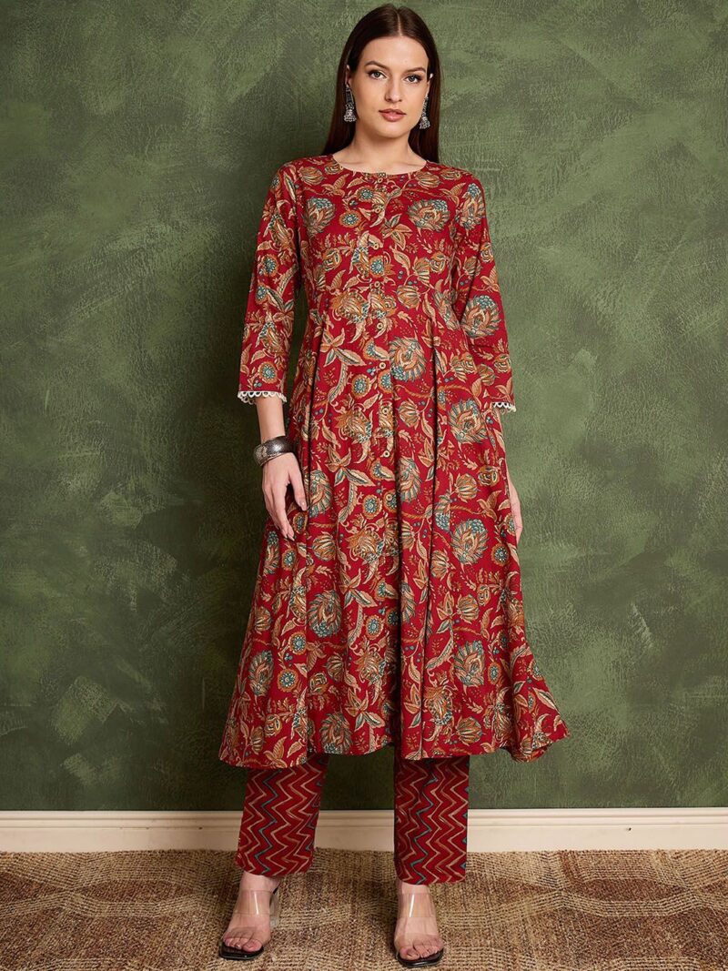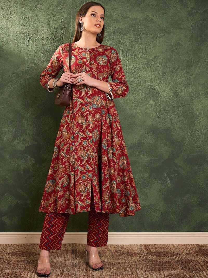 Maroon printed Kurta with Trousers
