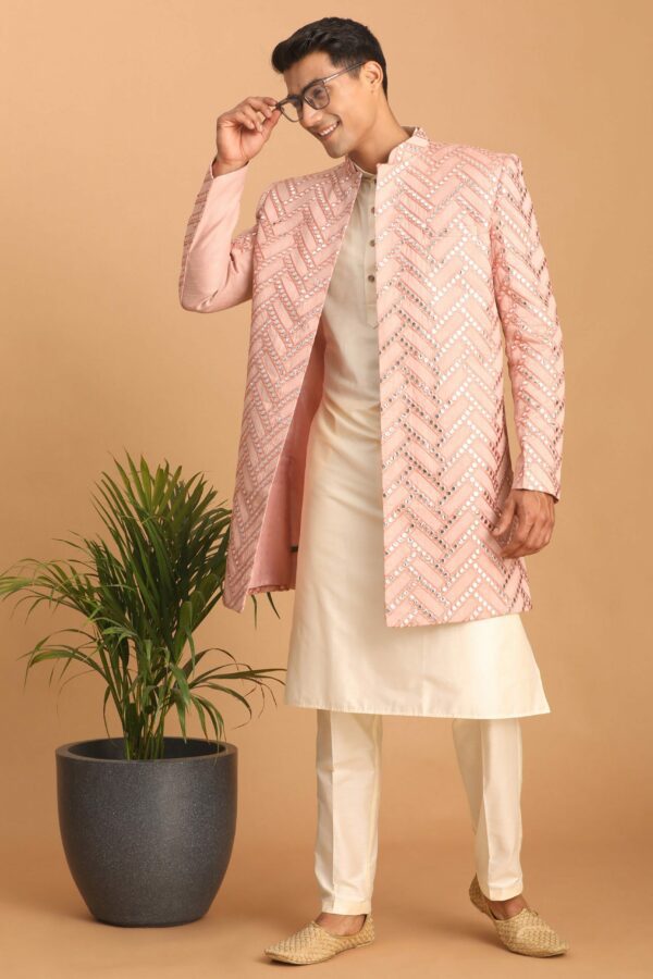 Men’s Pink Mirror Indo Western Sherwani with Kurta Pyjama Set