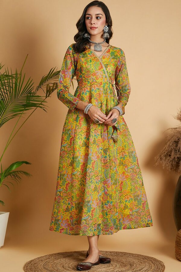Shae by SASSAFRAS Floral Printed Gotta Patti Angrakha Maxi Ethnic Dress