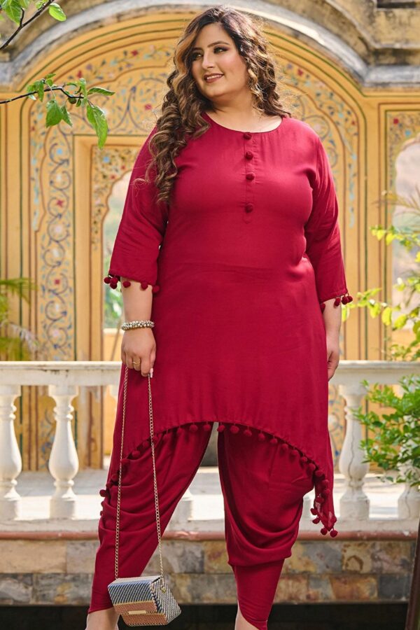 PrettyPlus by Desinoor.com Plus Size Round Neck A-Line Kurta with Dhoti Pants