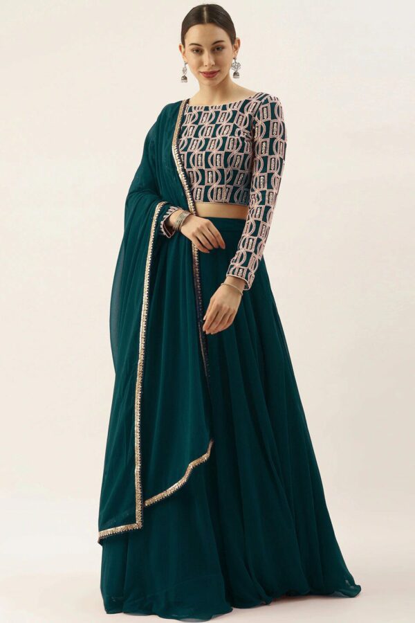 FABPIXEL Embroidered Semi-Stitched Lehenga & Unstitched Blouse With Dupatta