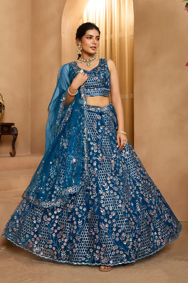 Nabyblue- Net Fabric Sequins embroidery Semi-Stitched Lehenga & Unstitched Blouse With Dupatta