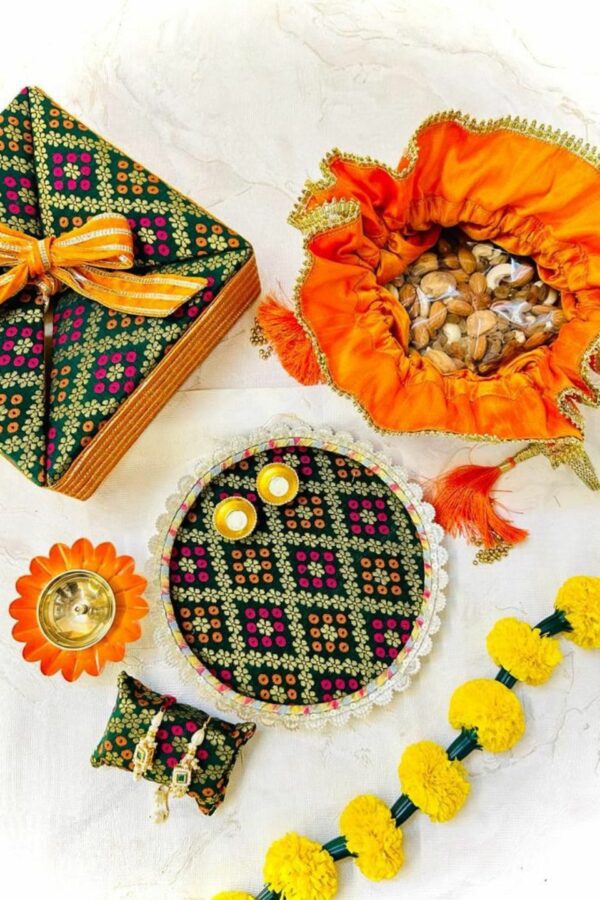 Girl’s Maroon And Green Banarsi Frock