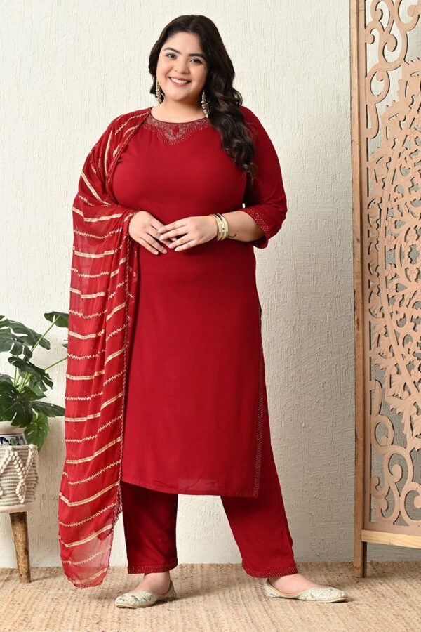 PrettyPlus by Desinoor.com Plus Size Yoke Design Ceroski Kurta With Trouser & Dupatta