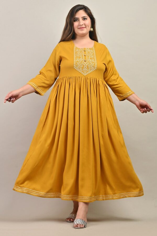 Swasti Plus Size Ethnic Motif Embroidered Round Neck Gathered Fit & Flare Maxi Dress