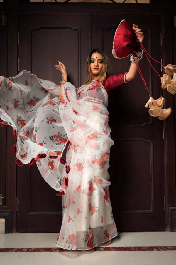 GILLORI Ethnic Motifs Embroidered Gotta Patti Chanderi Silk Kurta with Palazzos