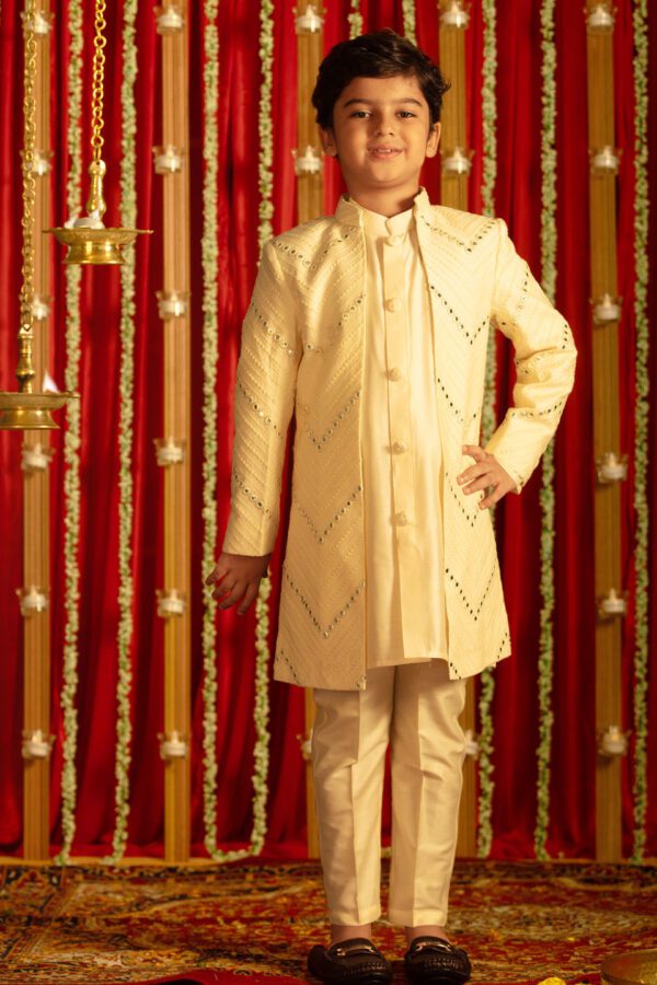 Boys’ Cream And Cream Ethnic Mirror Combo Set