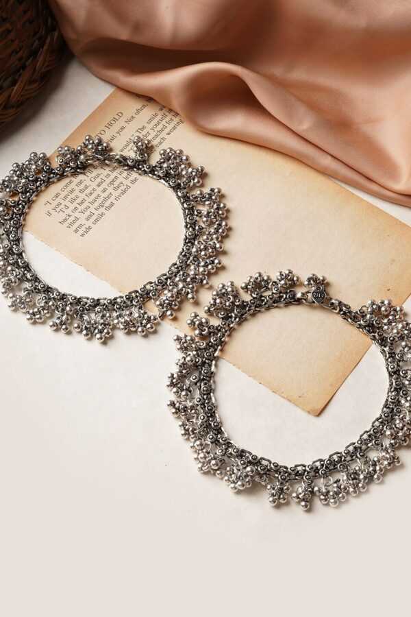 Original price was: £63.81.£42.90Current price is: £42.90.TEEJH Set Of 2 Oxidised Silver-Plated Ghungroo Anklets