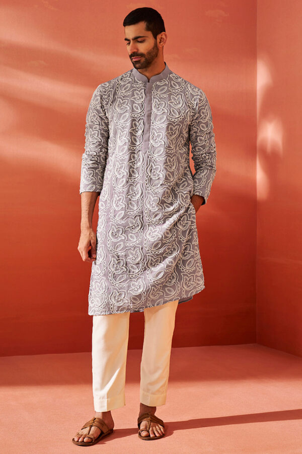 Jompers Mandarin collar Ethnic Motif Embroidered Thread Work Straight Cotton Kurta
