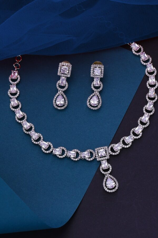 Original price was: £43.16.£36.56Current price is: £36.56.Yellow Chimes Silver-Plated American Diamond Studded Handcrafted Jewellery Set