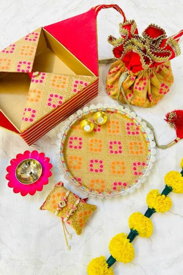 Original price was: £63.81.£44.54Current price is: £44.54.FABPIXEL Floral Printed Sequinned Leheriya Organza Saree