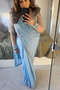 “This ready-made saree from Absolutely Desi was a dream to wear! As someone who is not confident in draping a saree, it gave me the push that I needed to wear one!