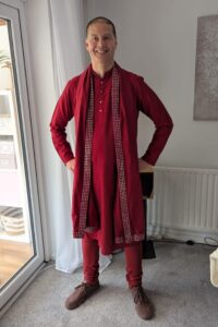 “I was able to dance in the kurta pyjamas no problem, once I realised I needed to pull the pyjama leg up far enough to get the bend in the knee 😎“