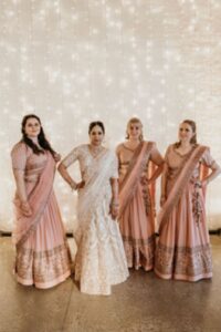 “The Bridesmaids Lehengas are stunning!! I’m so HAPPY! They are gorgeous! I cant stop smiling. Thank you so much for everything! They looked amazing! Thank you so much for bringing my vision to life. It was magical and the outfits were beautiful and everyone felt beautiful.”